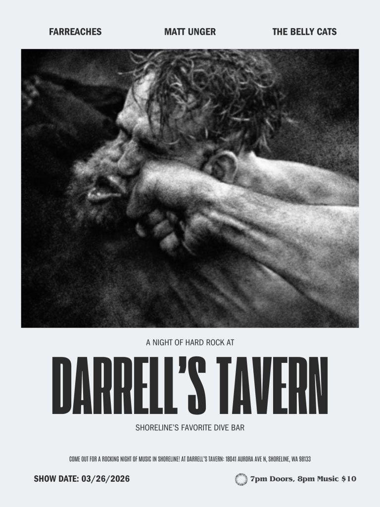 Darrell’s supports local and out-of-towner music of all flavors: rock, punk, country, electronica, metal, soul, jazz, funk, ska, comedy acts and anything in between. For booking inquiries, please email darrellstavern@live.com